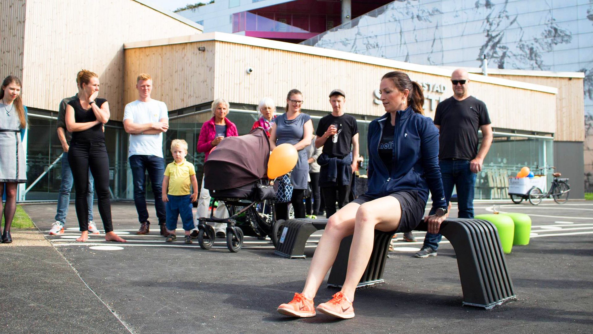 Fitnessparken er udviklet i samarbejde med en professionel træningskonsulent, og er opdelt i mange forskellige stationer. Du kan prøve kræfter med push-up bars, crossfit-yndlingen: battling ropes, eller et stort anlæg til træning med egen kropsvægt. Børnene vil også elske den grønne trædestensbane hvor man kan lege jorden er giftig i timevis. En fantastisk bane som både er god til at træne balance og grovmotorik. I alt rummer parken lidt over ti forskellige træningszoner, med noget for enhver smag. Er du mere til løbetræning, kan du følge den bugtede løbesti rundt om hallen.
